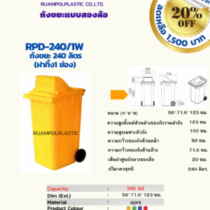 ถังขยะแบบสองล้อ RPD-240W/1 ถังขยะ 240 ลิตร (ฝาทิ้ง1 ช่อง)