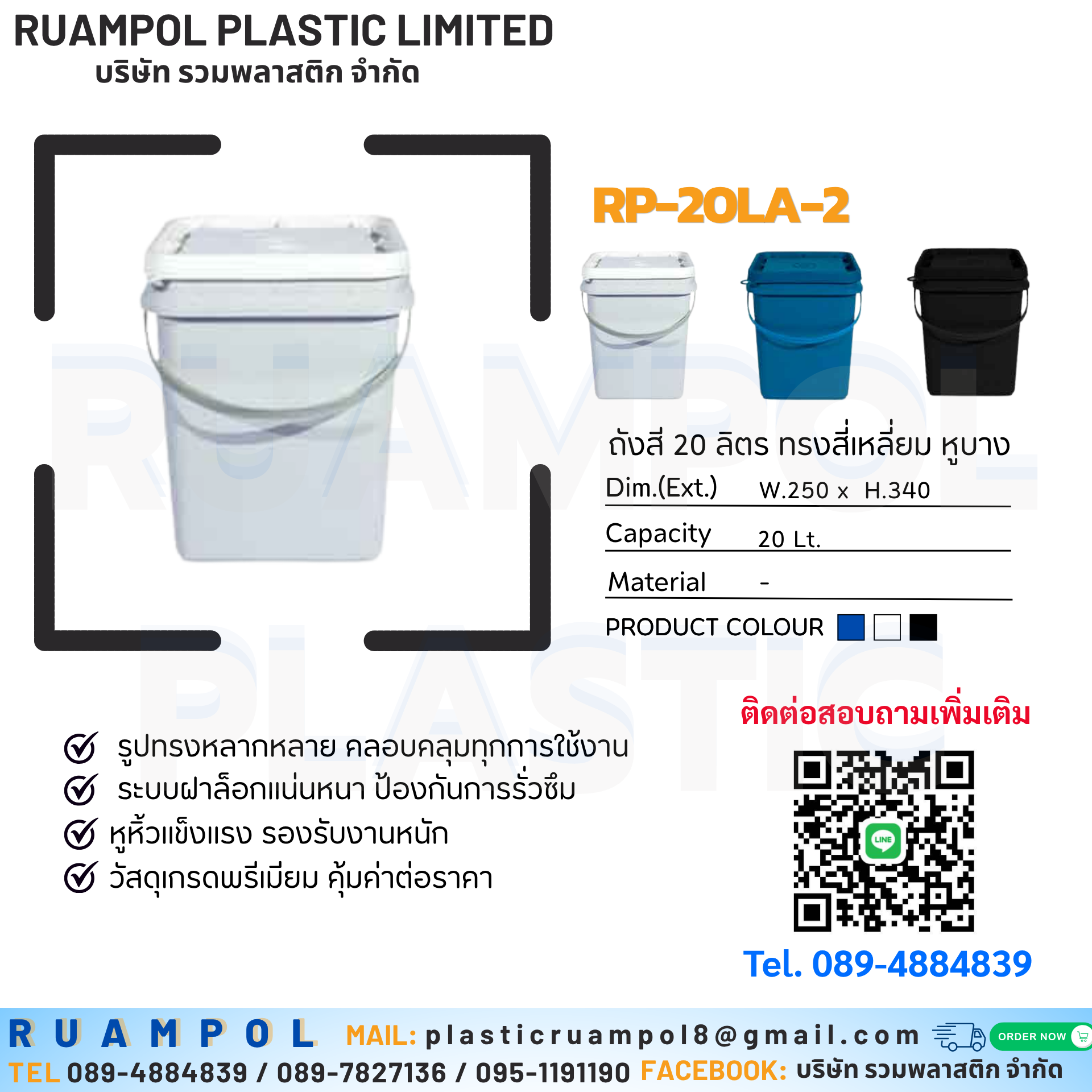 ถังสี 20 ลิตร ทรงสี่เหลี่ยม หูบาง รหัสสินค้า : RP-20LA-2