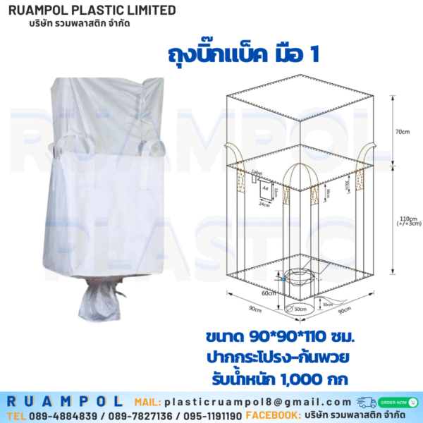 ถุงบิ๊กแบ็ค 90*90*110 ซม. ปากกระโปรง+ก้นพวย