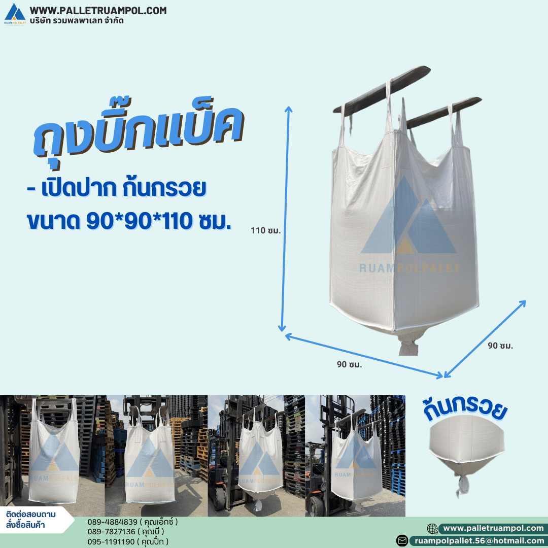 โดยมีประโยชน์มากมาย สามารถรับน้ำหนักสูงสุดได้ถึง 1 ตันหรือ 1,000 กิโลกรัม สามารถเลือกซื้อถุงบิ๊กแบ็คได้ที่ บริษัท รวมพลพาเลท สินค้าคุณภาพดี ราคาถูก ราคาโรงงาน สั่งซื้อจำนวนมากมีบริการส่งฟรี พื้นที่ กทม และ เขตปริมณฑล.