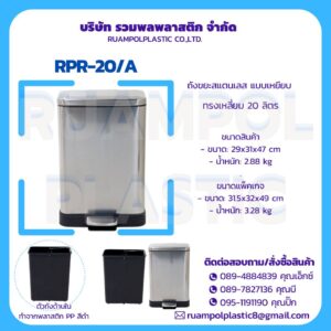 ถังขยะสแตนเลส แบบเหยียบ ทรงเหลี่ยม 20 ลิตร