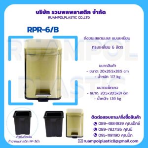 ถังขยะสแตนเลส แบบเหยียบ ทรงเหลี่ยม 6 ลิตร