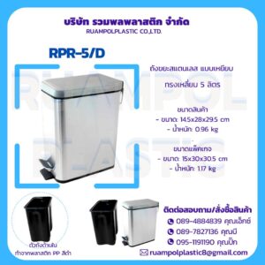 ถังขยะสแตนเลส แบบเหยียบ ทรงเหลี่ยม 5 ลิตร